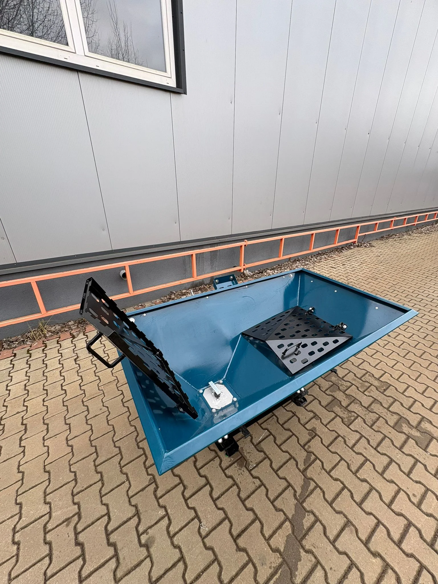 > Masywne sito (krata) w skrzyni, montowane na zawiasach