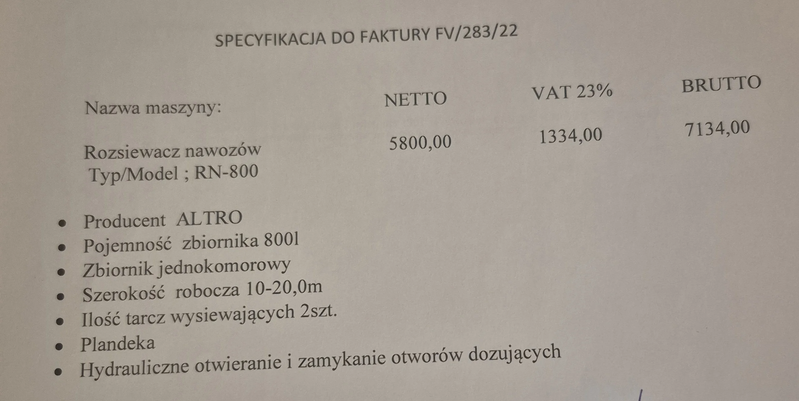 Sprzedam rozsiewacz do nawozów firmy ALTRO RN 800.