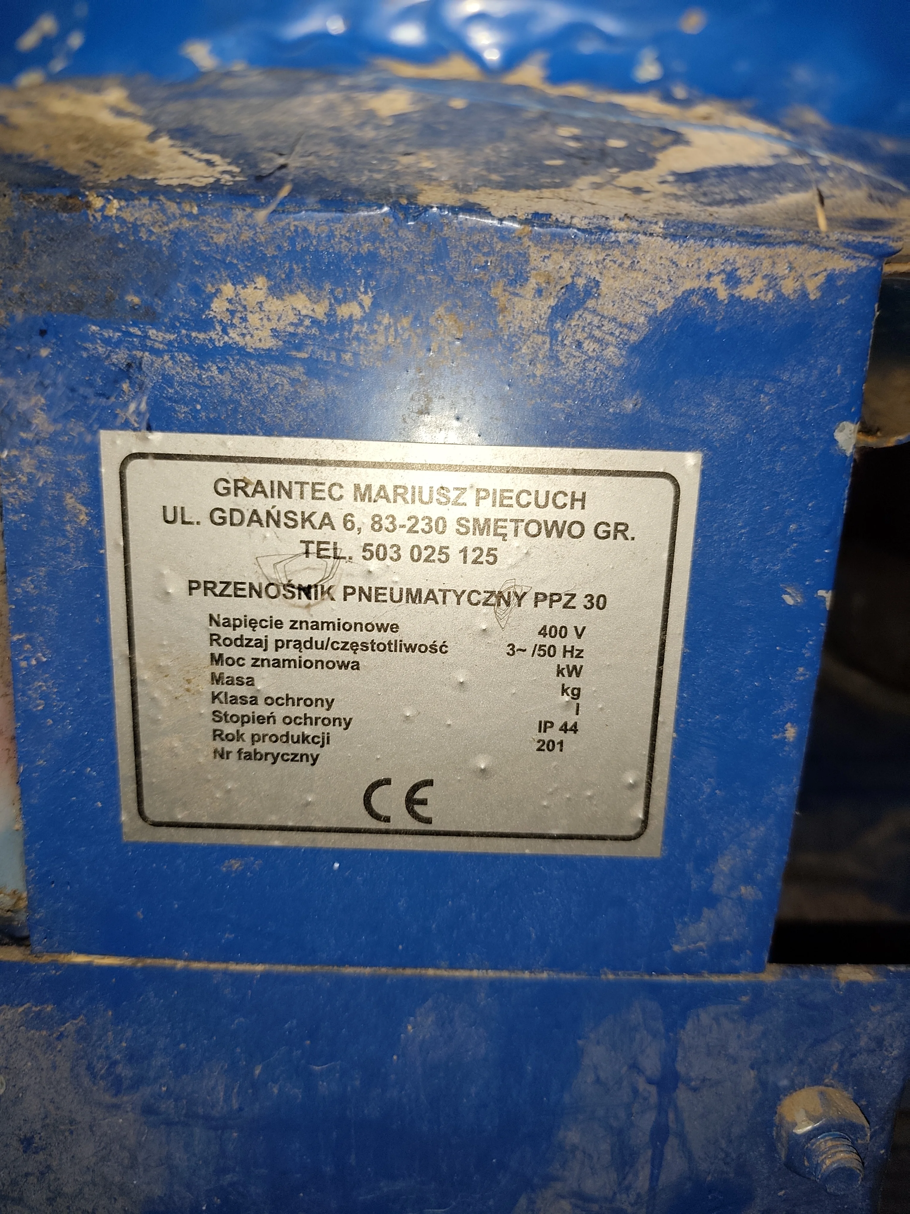 Urządzenie przedstawione na zdjęciu to przenośnik pneumatyczny Graintec PPZ 30 produkowany przez firmę Graintec Mariusz Piecuch.