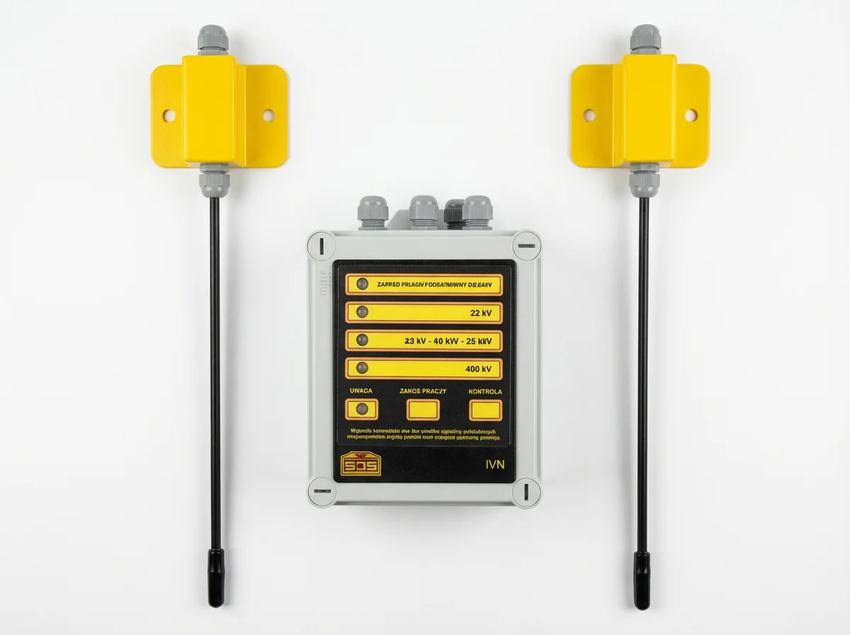 Sygnalizator IVN SCS Servis jest niezbędnym wyposażeniem maszyn budowlanych i innych urządzeń ruchomych, które mogą zbliżyć się na niebezpieczną odległość do napowietrznych lub kablowych linii elektroenergetycznych.