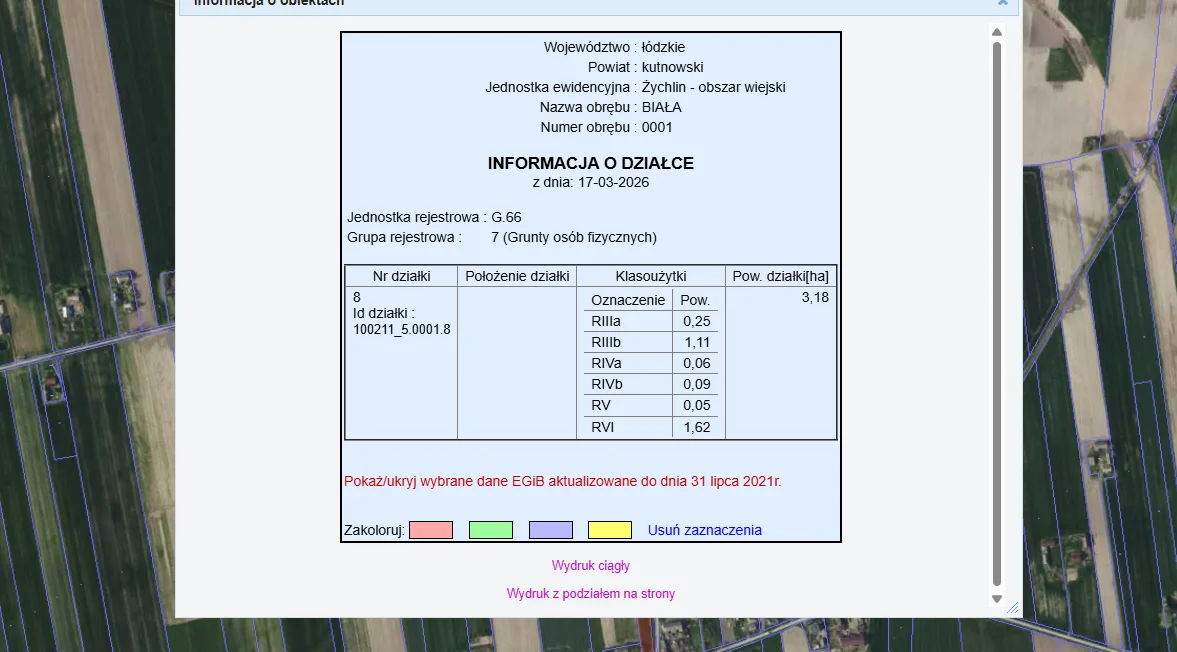 Na sprzedaż działka rolna o powierzchni 3,18 ha z bezpośrednim dostępem do drogi w obrębie wsi Biała w gminie Żychlin, woj. łódzkie.