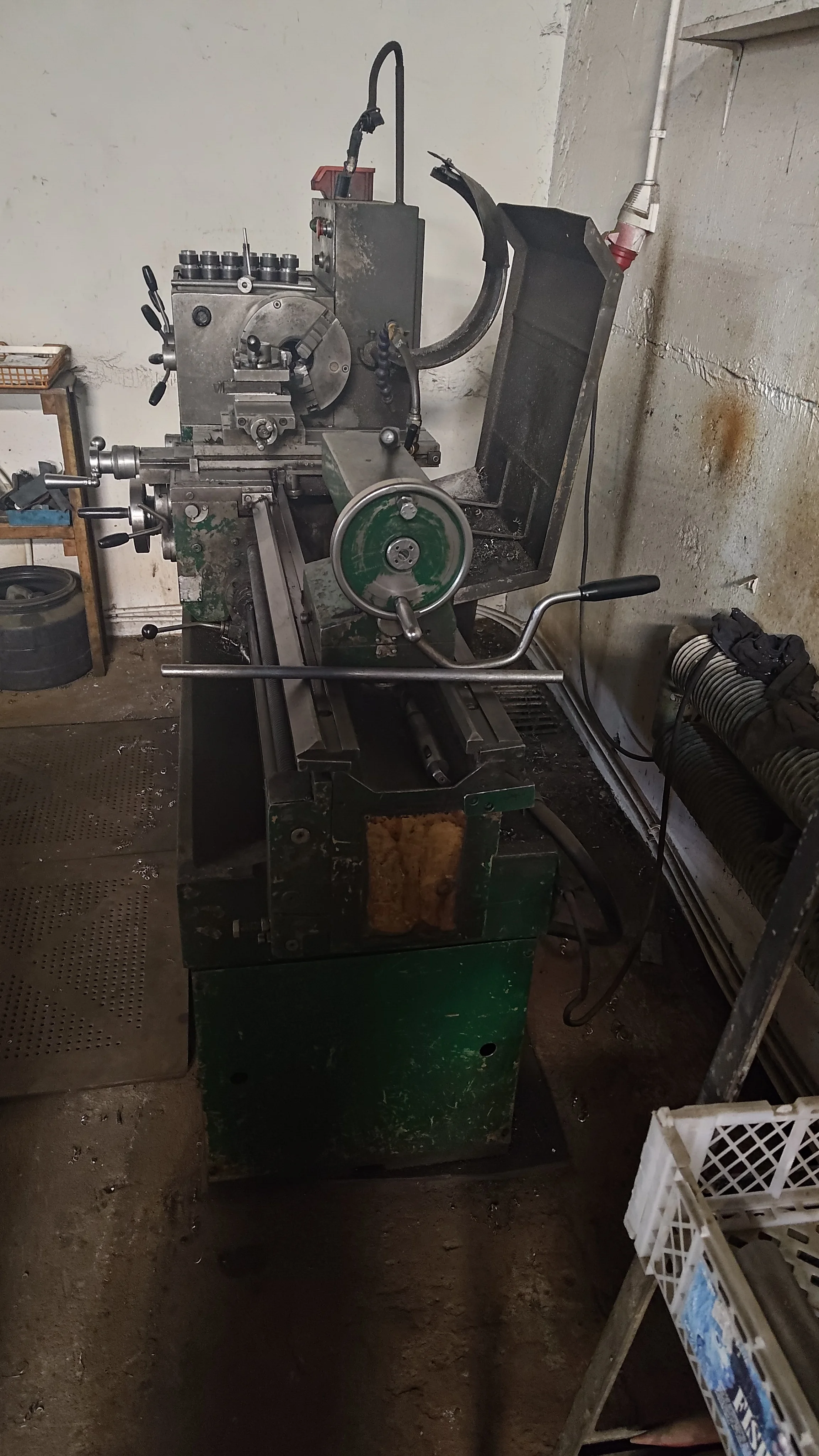 Maszyna w dobrym stanie technicznym, gotowa do pracy. Prosta i niezawodna w obsłudze – klasyczna tokarka konwencjonalna z mechanicznym sterowaniem.